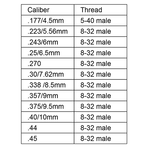 .177, .22, 6mm, .25, .27, .30, .338, .35, .357, .40, .44, .45, .50kal.