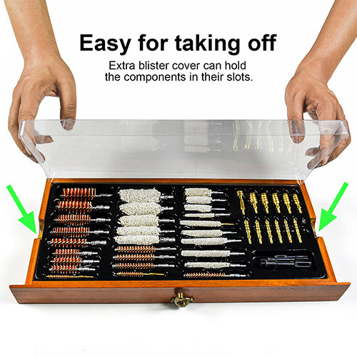 Deluxe puidust korpusega universaalne relvapuhastuskomplekt koos relvatoega