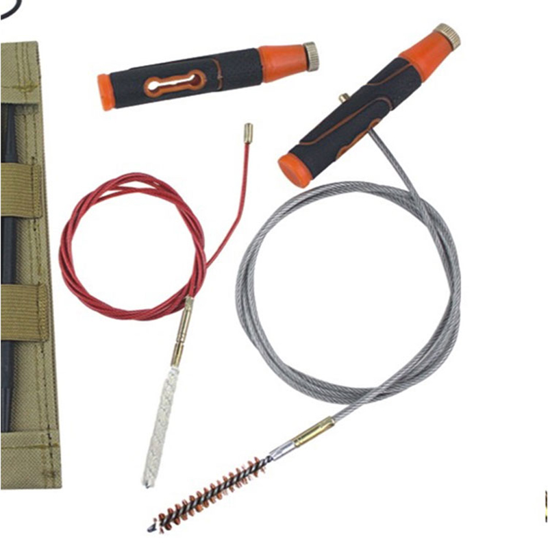 Püstoli puhastamise painduv kaabel pika relva jaoks ● Pvc-kattega kõrgpingega terastross, mille mutter on tihedalt kinni surutud, ei lähe lahti. ● Lihtne kasutamine, mugav kaasaskandmine ja ladustamine, kuna see on paindlik. ● Püstoli ava pinna kaitsmine kriimustuste eest selle PVC-kattena. ● Opp koti individuaalne pakend. ● Kliendi originaalseadmete tootja, logo, pikkus ja niidid on vastuvõetavad.