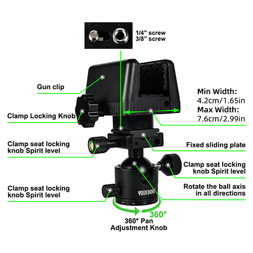 OEM CNC-alumiiniumist 360-kraadine kuulpea laskesadula tugiklamber jahilaskmiskepi ühejalgse statiivi jaoks