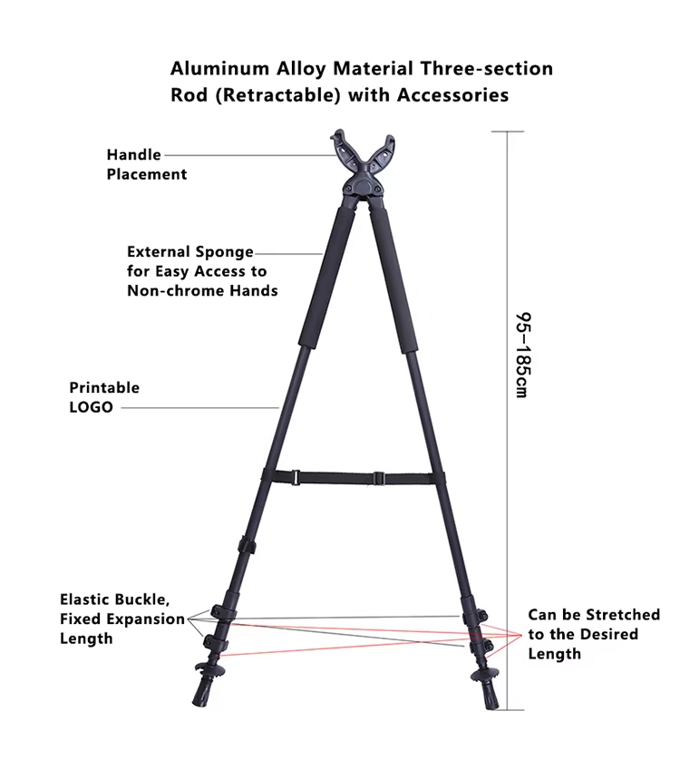 Reguleeritava kõrgusega välitingimustes kasutatavad alumiiniumist jahitarvikud laskekepp
