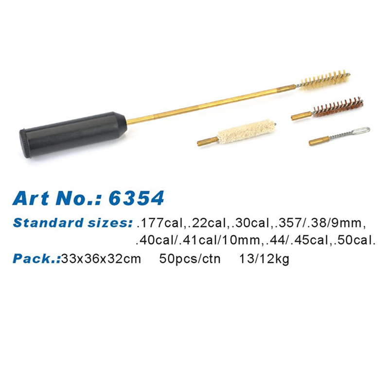 Õõnes käepide Käsipüstoli puhastuskomplekt messingharjaga, puuvillane mopp, nailonhari, piludega plaastrihoidja, 2 messingist vardaid. Kui neid ei kasutata, saab kõik komponendid õõnsasse käepidemesse panna. Seega on tegemist väga väikese ja mugava puhastusvahendiga püstoli/käsirelva puhastamiseks.
