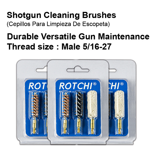 Jahipüssi puhastushari 3-in-1 komplekt, blister ja kaart pakett. Saadaval suurused: 12G, 16G, 20G, 410